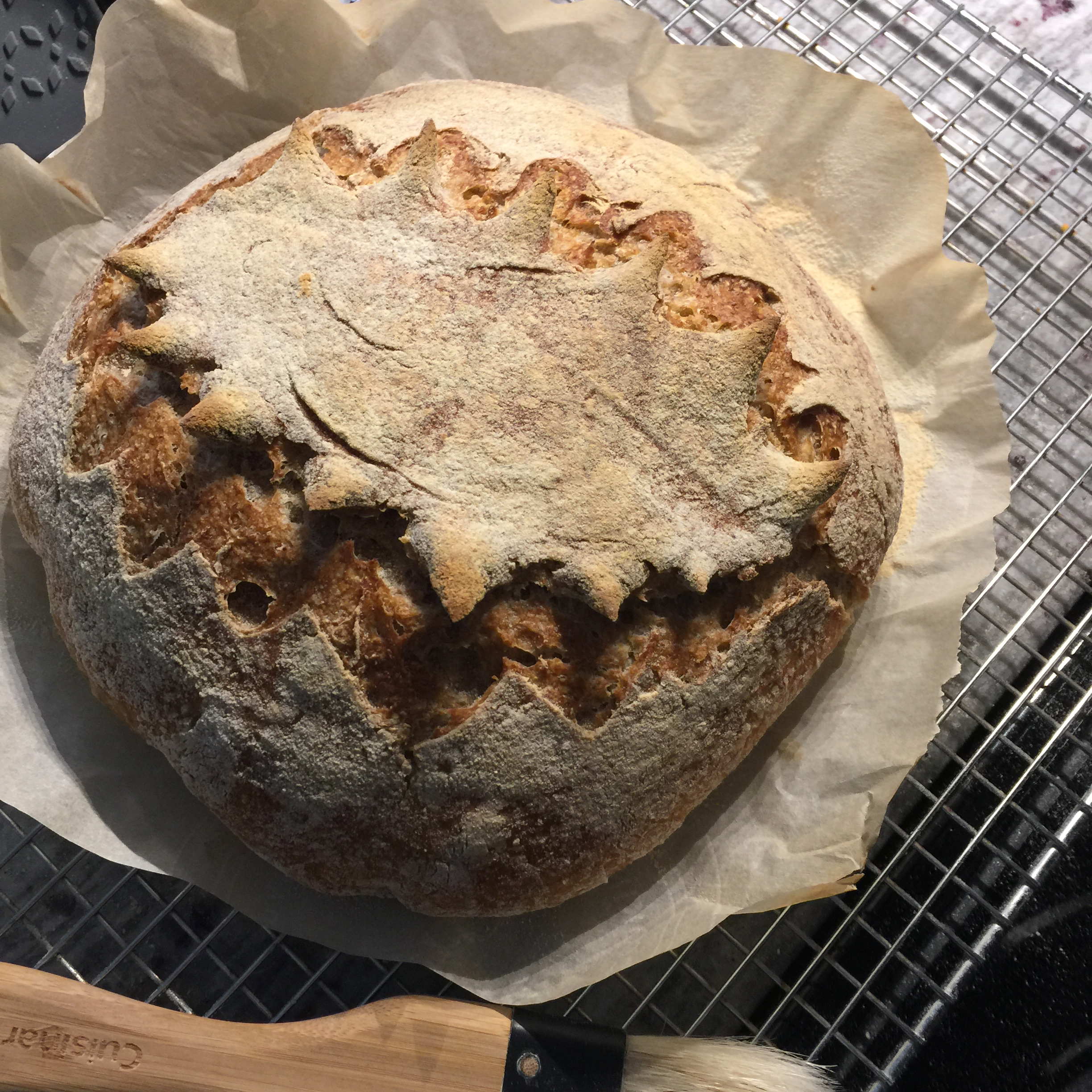 IMG_0915 October 5, 2019 Saturday’s “Sunday Bake” and More Changes in Technique 2448 × 2448 One more snip each side might’ve stopped cracking.